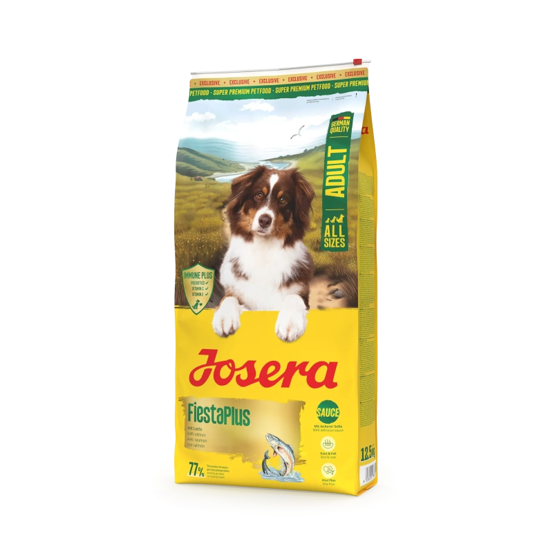 Josera FiestaPlus kahevärviliste graanulitega kuivtoit sisaldab lisaks vaheldusrikkale menüüle ka väärtuslikke toidulisandeid. Toit sisaldab lisaks olulistele vitamiinidele lisaks ka tauriini ja L-Karnitiini, andes sinu koerale ekstra elujõudu!